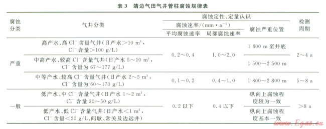 結合油管腐蝕因素分析情況以及靖邊氣田氣井腐蝕檢測結果,靖邊氣田氣井油管腐蝕總體規(guī)律見表3。