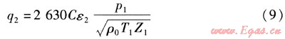 式中q2——臨界狀態(tài)氣體折算成標(biāo)準(zhǔn)狀態(tài)的流量,m3/h
