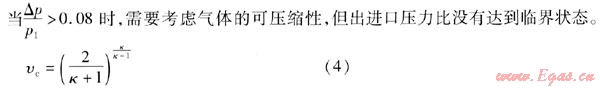 時(shí),為亞臨界狀態(tài),必須考慮氣體的可壓縮性,否則引起較大誤差。為此需要考慮氣體密度的變化,引出氣體密度的膨脹系數(shù),此時(shí)常用的公式為:
