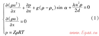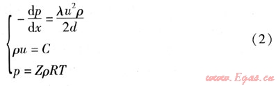 相對于其他項數值較小,可以忽略[11]。b.在城市燃氣管網中,管道的標高差值不太大,因此,動量方程中的重力項g(ρ-ρa)sinα一般忽略不計。