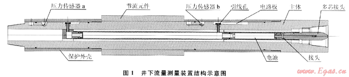 該測量裝置內(nèi)置壓力傳感器和數(shù)據(jù)采集卡,并通過多芯接頭與隨鉆測井(MWD)裝置連接。可實時采集壓力傳感器的信號并進(jìn)行簡單處理,之后把采集的壓力數(shù)據(jù)通過MWD傳至地面進(jìn)行分析,即可得到井底實時的環(huán)空流速(流量)。