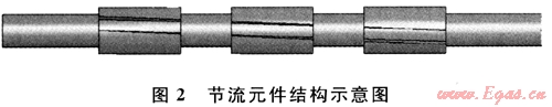 基于井下安全的考慮,這里選擇被廣泛應(yīng)用于鉆井現(xiàn)場的井下穩(wěn)定器作為節(jié)流元件的參考結(jié)構(gòu)。在產(chǎn)生需要壓差的前提下,為了保證鉆井液(包括巖屑)能夠沿流道順利通過節(jié)流元件而不發(fā)生阻塞,這里使用多級節(jié)流的方法來達(dá)到預(yù)期的節(jié)流效果,如圖2所示。