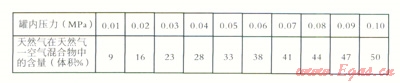 浸灌置換裝置研制時(shí),是采用只混氣不置換,即用10份天然氣混1份空氣達(dá)劍蚩換的目的。應(yīng)該說這是個(gè)創(chuàng)新、有價(jià)值的設(shè)想。有同行提出罐內(nèi)會(huì)形成三角形或平面形界面。理由是天然氣比空氣輕一半,天然氣凝聚在上,空氣凝聚在下,形成界面。罐內(nèi)天然氣、空氣永遠(yuǎn)靜止有可能形成界面,實(shí)際情況是,置換過程中天然氣、空氣是在不停的流動(dòng)、攪動(dòng),形成的是混合物。相當(dāng)於煤礦瓦斯氣(甲烷約占50%,空氣約占50%),在運(yùn)行過程中是不會(huì)形成界曲的。
