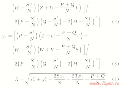 由此得到每個下凹曲管段的曲率中心和半徑計算式為: