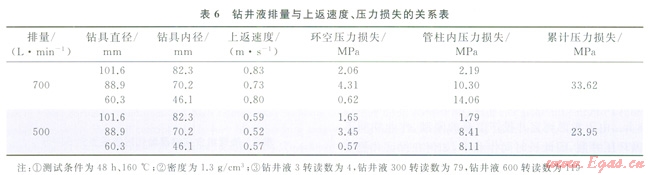 當(dāng)洗井的排量達(dá)到500L/min時(shí),最小上返速度0.52m/s,累計(jì)壓力損失23.95MPa,能夠順利帶出12mm及以下直徑的水泥塊(表6),基本滿足洗井要求。