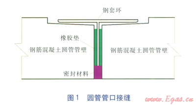 頂管設(shè)計參照北京鐵路局(京橋通—5002)《鐵路頂管通用圖》。頂進管道采用鐵路專用雙插口鋼筋混凝土圓管,規(guī)格為Ø1750mm Ti-S,編號為T12,每節(jié)長3m,管壁厚度為175mm,圓管結(jié)構(gòu)控制頂力為7450kN,頂進時需在圓管外壁涂石蠟減阻。圓管管口接縫見圖1。