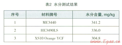 測(cè)試結(jié)果表明:3種材料聚乙烯燃?xì)夤懿木哂形?,并且水分含量相差不大,均大?span lang="EN-US">300mgkg。