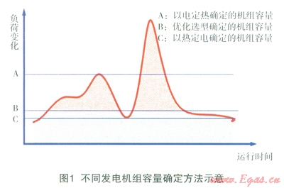 按照以上方法確定的發(fā)電機(jī)容量一般介于單純按照以熱定電和以電定熱確定的發(fā)電容量之間,如圖1所示。