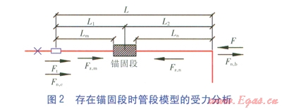 當(dāng)管段存在錨固段時,對于錨固段左側(cè)、右側(cè)有: