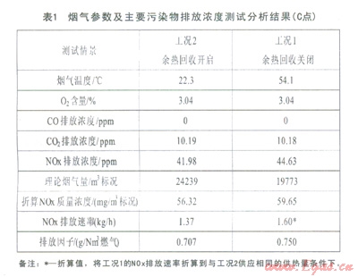 兩個情景下的煙氣采樣分析結果如下:
