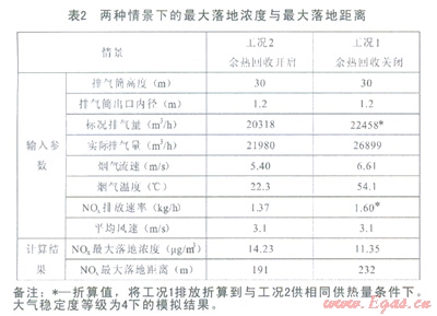 (4)通過實際煙氣余熱回收與否兩種工況的濃度對比分析,得出:余熱回收工況NOx最大落地濃度略有增加,但是迅速衰減。無論是哪一種工況,其排放均遠低于《環(huán)境空氣質(zhì)量標準》(GB3095—2012)中的二類區(qū)NO2lh平均值(200mg/m3);且余熱回收工況最大落地距離減小了l7.6%,減小了污染范圍。