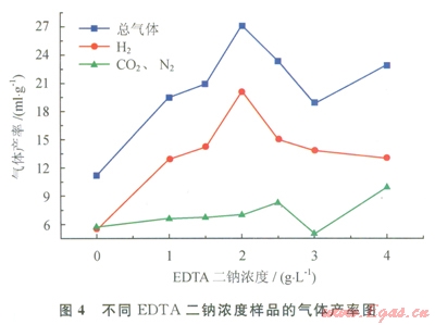 3.2 EDTA二鈉濃度對產(chǎn)氫的影響