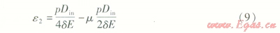 設(shè)定e2是由內(nèi)壓引起的管道軸向應(yīng)變,由于s3=0,由式(6)可得到由內(nèi)壓引起的管道軸向應(yīng)變e2的計算式為:
