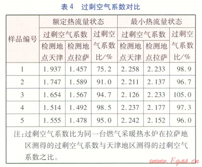 ②燃?xì)獠膳療崴疇t的熱效率:對(duì)于同一臺(tái)燃?xì)獠膳療崴疇t在拉薩地區(qū)過(guò)剩空氣系數(shù)要小于海平面地區(qū),而過(guò)剩空氣系數(shù)越大,過(guò)剩的煙氣帶走的熱量越多,熱效率越低,因此拉薩地區(qū)測(cè)得的熱效率要高于海平面地區(qū)。
