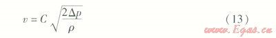 根據(jù)伯努利方程可計(jì)算燃?xì)獾牧魉?,由于?shí)際測(cè)量中通常不能滿足理想的伯努利方程,故對(duì)其修正為[1]: