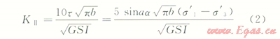 式中KⅡ為剪性裂縫強度因子;s¢1、s¢3為最大和最小有效應(yīng)力;a為裂縫與主應(yīng)力s¢3的夾角;b為微裂長度;t為裂縫面上切應(yīng)力。