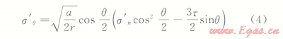 當(dāng)s¢n<0時,裂縫面法向應(yīng)力為拉應(yīng)力狀態(tài),產(chǎn)生法向位移、裂開,滑動抗剪摩擦力忽略不計,裂縫端部擴(kuò)展裂紋(r,q)處的s¢q可表示為: