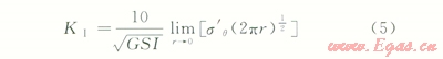 由式(4)、(5)可得出擴(kuò)展裂縫(r,q)處的應(yīng)力強度因子為: