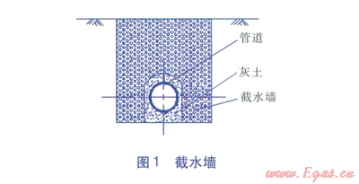 坡度為7°~l5°的陡坡:宜在管溝內(nèi)每隔l0m采用灰土回填,防止回填土流失?;彝裂毓軠陷S向回填長(zhǎng)度為1m灰土由石灰和土組成,石灰與土的體積比為3:7。