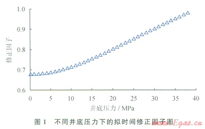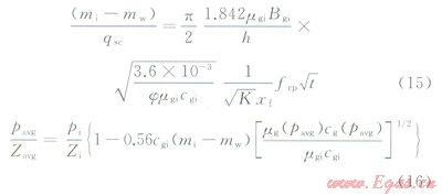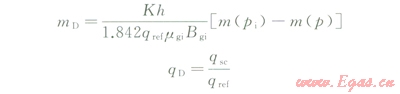 氣體具有強(qiáng)可壓縮性,其黏度(mg)、偏差因子(Zg)、體積系數(shù)(Bg)等都是關(guān)于壓力的強(qiáng)非線性函數(shù),如果直接對(duì)氣體滲流控制方程中的擴(kuò)散系數(shù)進(jìn)行強(qiáng)行近似必然會(huì)引起較大的誤差。使用擬時(shí)間函數(shù)(tg)能夠?qū)怏w滲流問題等效轉(zhuǎn)化為液體滲流問題,同時(shí)改進(jìn)了“強(qiáng)行近似擴(kuò)散系數(shù)(1/jmgcg)為常數(shù)”的假設(shè)條件,結(jié)果必然使得理論描述更接近于礦場(chǎng)實(shí)際情況,也方便液體研究領(lǐng)域內(nèi)成果的參考和借鑒。其中,擬時(shí)間定義為:
