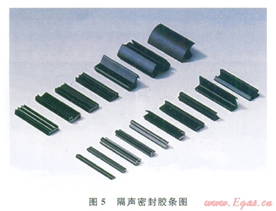 平臺生活樓房間布有400mm×560mm規(guī)格的氣阻型鋼質(zhì)窗,房間原有氣阻型窗玻璃膠條老化開裂,漏聲嚴(yán)重,其現(xiàn)場如圖4所示。對于此類狀況,可將房間舷窗用耐候隔聲膠條替換原有老化膠條。密封膠條的選用應(yīng)符合現(xiàn)場門窗的實際要求,具有阻燃、防火能力,如圖5所示。