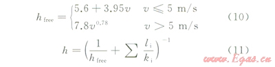 式中hfree為模板熱對(duì)流系數(shù),kJ(m2·h·℃);v為風(fēng)速,ms,文中取v5.6ms;li為混凝土模板厚度,文中取li0.018m;ki為模板導(dǎo)熱系數(shù),文中取ki0.837kJ(m·h·)。