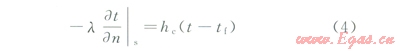 式中tf為空氣溫度,;hc為固體邊界面與流體之間的熱對(duì)流系數(shù)。