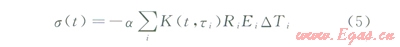 (5)對(duì)應(yīng)于第i時(shí)間段,a為混凝土熱膨脹系數(shù),1;K(ti,t)為應(yīng)力松弛系數(shù);Ri為約束系數(shù),其值與構(gòu)件長(zhǎng)高比及混凝土彈性模量比有關(guān);Ei為彈性模量,MPa;DTi為混凝土的內(nèi)外溫差,。