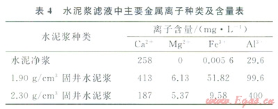 2.4 水泥漿濾液中金屬離子種類及含量