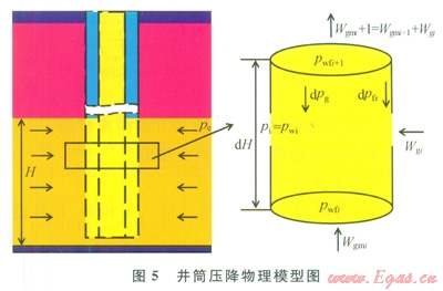 其步驟為:①將產(chǎn)層以上的井筒部分分成m等份,按照平均溫度平均壓縮因子井簡壓降模型[11]計算出產(chǎn)層頂部壓力(p0);②將整個產(chǎn)層等分成n份,產(chǎn)層頂部為第n個微元段,底部為第1個微元段;③利用式(8)計算第咒個微元段的底部壓力(pwfn),根據(jù)滲流模型(1)~(2)、耦合條件(9)~(11)計算從產(chǎn)層流入井筒的氣體質(zhì)量流量(Wgn),計算流入第n-1個微元段的氣體質(zhì)量流量,即Wgtn-1=Wgtn-Wgn;④重復(fù)第③步,直至算到產(chǎn)層底部。
