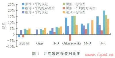 采用工程常用的無(wú)滑脫模型、Hagcdorn&Brown[21]、Orkiszewski[22]、Gray[23]、Mukherjee&Brill[24]、Hasan&Kabir[25]對(duì)上述凝析氣井井底流壓進(jìn)行了計(jì)算,其誤差統(tǒng)計(jì)結(jié)果如表3和圖1、2所示。