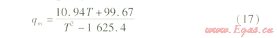 式(17)即為常壓罐預(yù)冷液氮流量qm與罐內(nèi)溫度T的關(guān)系。把上述各參數(shù)代入式(15)得: