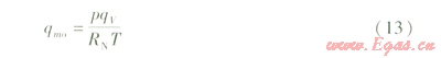 排氣出口體積流量理論計(jì)算時(shí)基本考慮為常量,且存在關(guān)系: