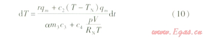 式(2)表示在壓力和體積不變的條件下,儲(chǔ)罐內(nèi)氣體溫度變化和質(zhì)量變化的關(guān)系。