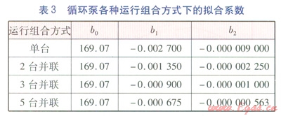 循環(huán)泵各種運(yùn)行組合方式下的擬合系數(shù)見(jiàn)表3。