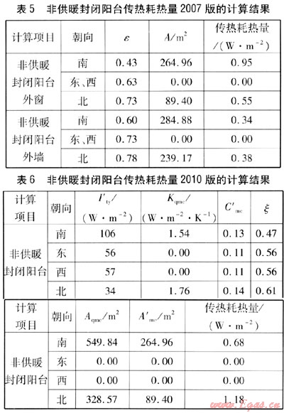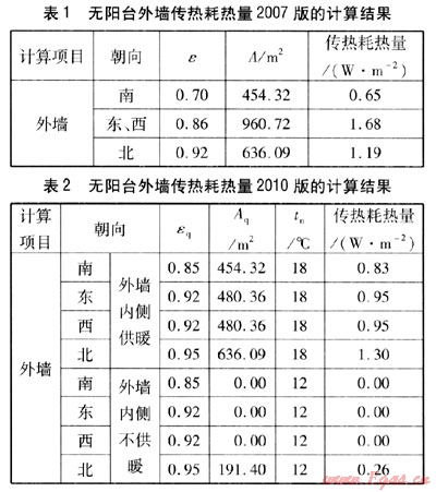由式(2)與式(7)的比較可知:式(7)中tn取18℃;2010版中太陽輻射修正系數(shù)由較精確的計(jì)算得出;2010版中非供暖封閉陽臺的傳熱耗熱量不再像2007版那樣將墻與窗(門)分開計(jì)算。
