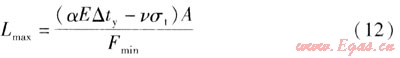 管道循環(huán)溫差位于最大允許循環(huán)溫差和屈服溫差之間,但是由于此時(shí)局部穩(wěn)定控制循環(huán)溫差小于屈服溫差,因此仍不允許進(jìn)入錨固狀態(tài),管道的最大允許安裝長度計(jì)算見式(8)。