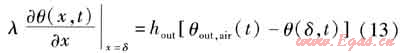 式(13)中hout取19W/(m2·K)[5]。