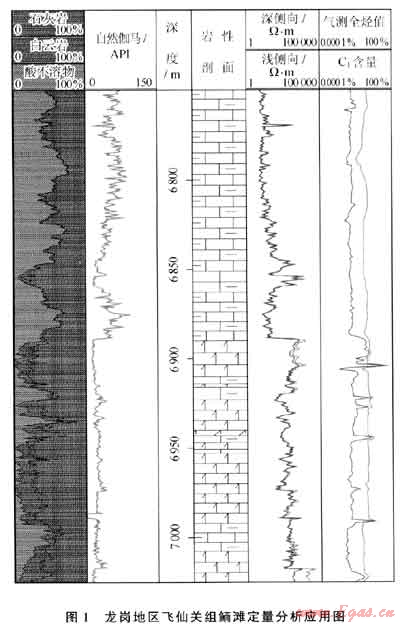 在四川盆地龍崗地區(qū)飛仙關組鉆進中,應用碳酸鹽巖定量分析技術對龍崗地區(qū)3口井進行了采樣分析。從其中一口井的分析可見(圖1),在6750~6890m儲層段,酸不溶物、石灰質含量高,與上部泥灰?guī)r的自然伽馬高值、雙側向低值對應較好;在6890~6992m儲層段,白云質含量出現(xiàn)至高值,與鮞灘白云巖的自然伽馬低值、雙側向高值顯示吻合較好睜…,為判斷飛仙關組鮞灘儲層提供了可靠依據(jù)。但酸不溶物含量偏高,與鮞灘儲層物性相關性稍差。