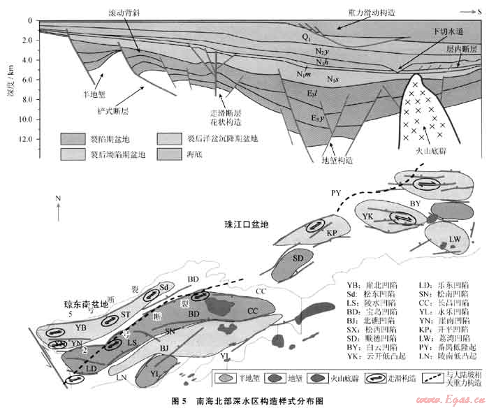 關鍵詞:瓊東南-珠江口盆地;深水區(qū);構造樣式伸展構造;走滑構造;重力構造;分布規(guī)律;南海