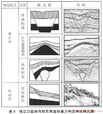 但上述兩種構造樣式并非孤立存在,垂直型重力構造樣式也可以表現(xiàn)出側向運動特征,例如底辟作用所產生的順層侵入構造;同時滑動型構造樣式也具有垂向上的分量,在實際工作中應仔細甄別加以劃分。