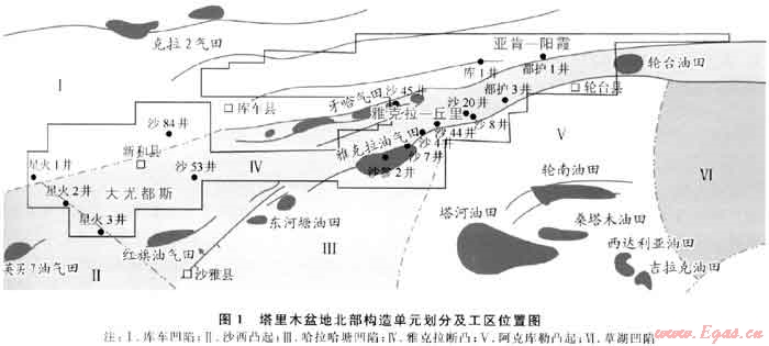 塔里木盆地在地質(zhì)歷史中經(jīng)歷了多期構(gòu)造運動交替,表現(xiàn)出典型疊合盆地多旋回構(gòu)造運動復雜控油過程。在這一背景下,前人對雅克拉斷凸成藏過程進行了大量研究并提出了多種成藏模式[1~2],但是成藏期次和時間的厘定多建立在對成藏條件定性分析的基礎上,缺乏直接手段;同時,未根據(jù)該區(qū)不同來源油氣運移的差異,建立不同的輸導模式。為此,筆者運用流體包裹體系統(tǒng)分析方法,通過對雅克拉斷凸白堊-古近系系統(tǒng)采樣樣品的測試所獲取的油氣充注期次信息,同時結(jié)合工區(qū)烴源巖生排烴史、油氣顯示和輸導體系研究成果,來探討雅克拉斷凸油氣成藏過程。