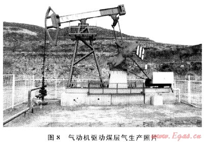 首次在沁南示范工程采用氣動機作為煤層氣抽采的動力設(shè)備,利用氣井自產(chǎn)氣為燃料,既減少了動力成本,又可以避免繁瑣的配套工程建設(shè)。氣動機的應用,極大地簡化了煤層氣井生產(chǎn)的建設(shè)工序,加快了投產(chǎn)進程,具有較高的靈活性和方便性。隨著氣動機設(shè)備的不斷更新完善,在煤層氣生產(chǎn)中的應用也將逐步上升(圖8)。