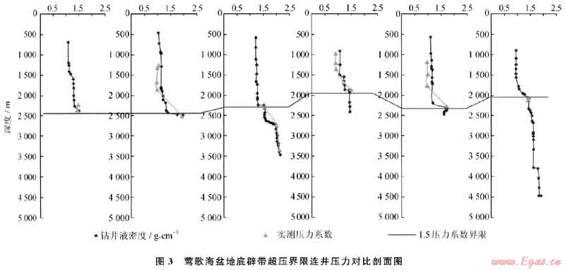 1) 鉆井安全是高溫超壓盆地鉆井過(guò)程中的重要因素,鉆前壓力預(yù)測(cè)是鉆井井身結(jié)構(gòu)設(shè)計(jì)的基礎(chǔ)。經(jīng)過(guò)多年的勘探實(shí)踐,總結(jié)出“速度差法”是鶯歌海盆地的鉆前壓力預(yù)測(cè)和鉆后壓力計(jì)算中一種適用的方法,并建立了相應(yīng)的計(jì)算數(shù)學(xué)模型,準(zhǔn)確性高。