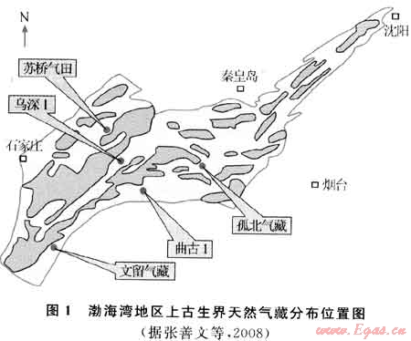 ①蘇橋C02氣田。②孤北氣田、黃驊坳陷千米橋氣田。③大港南烏馬營(yíng)潛山構(gòu)造烏深1井奧陶系天然氣流。④東濮凹陷三疊系的天然氣流;文留氣藏文古1井、濮深1井、慶古1井奧陶系風(fēng)化殼發(fā)現(xiàn)CO2氣流等(圖1)。