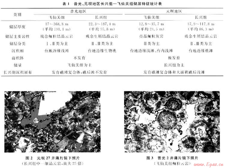 總起來(lái)看,普光地區(qū)儲(chǔ)層主要發(fā)育飛仙關(guān)組,具有厚度大、物性好的特點(diǎn);元壩地區(qū)儲(chǔ)層主要發(fā)育長(zhǎng)興組,具有面積大、礁后灘發(fā)育的特點(diǎn)。