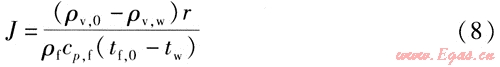 ρv,0——煙氣中水蒸氣在冷凝換熱器入口處的質(zhì)量濃度,kg/m3