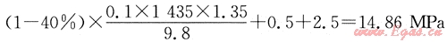 如果考慮井內(nèi)天然氣影響,液柱壓力降低40%,則井底壓力仍為: