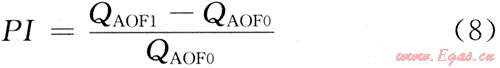 根據(jù)防砂前后的產(chǎn)能試井資料計(jì)算出的無阻流量可計(jì)算相應(yīng)的變化比,變化比的大小反應(yīng)防砂措施改善井底流動條件的好壞。假設(shè)防砂前、后的氣井無阻流量為QAOF0和QAOF1,則變化比(PI)為: