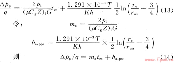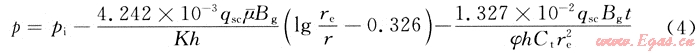 同時(shí),對(duì)于圓形封閉邊界中心一口單相擬穩(wěn)定流動(dòng)氣井,有